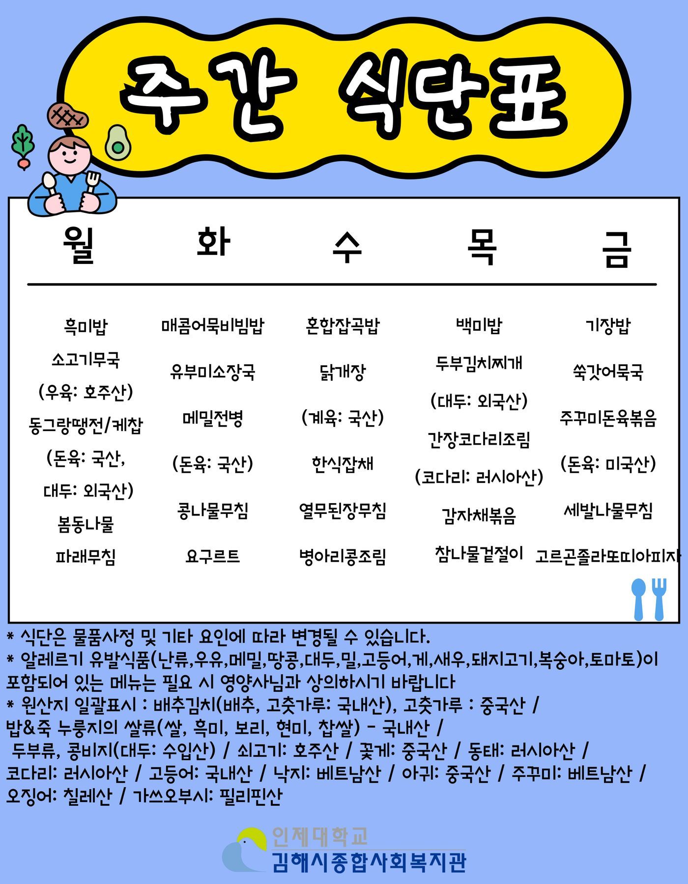 인제경로식당 2025년 11월 5주차(11/24~11/28) 식단