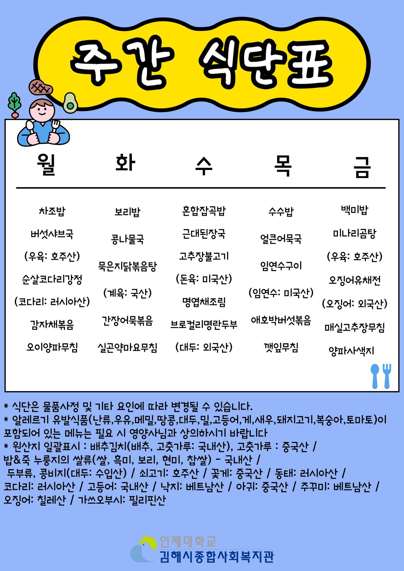 인제경로식당 2026년 3월 2주차(3/9~3/13) 식단
