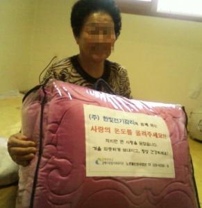 노인돌봄서비스사업단에서는 (주)한빛전기감리로부터 이불을 후원 받아