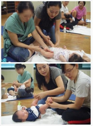 아기의 성장혈을 자극하고 근육을 부드럽게 만들어 키가 쑥쑥 클 수 있도록 도와주는 마사지 기법을 배웠습니다.