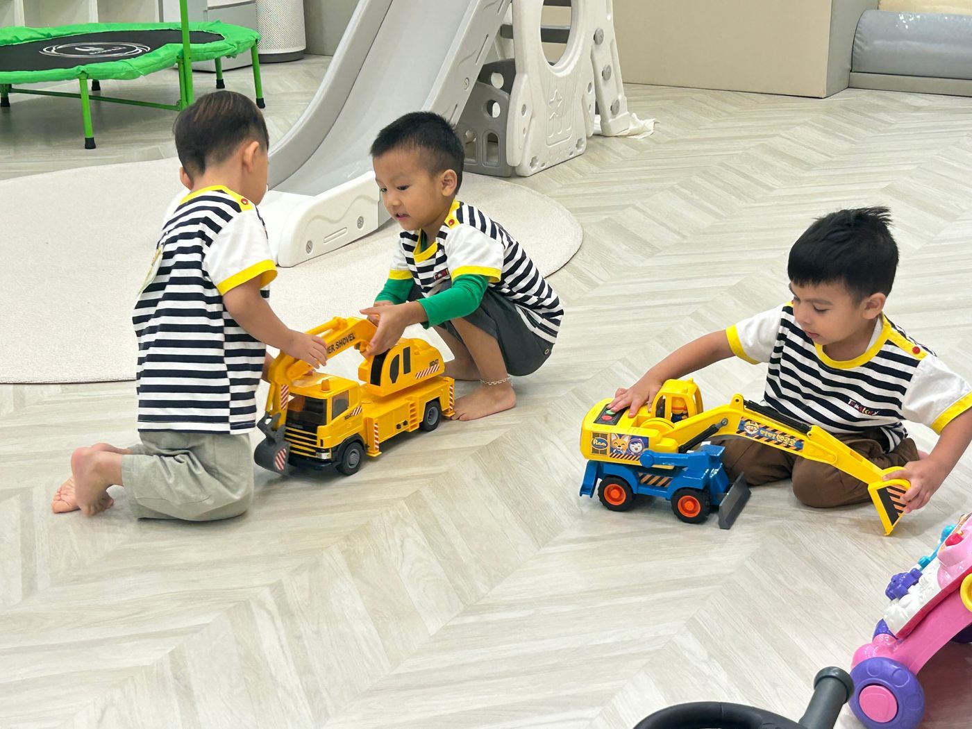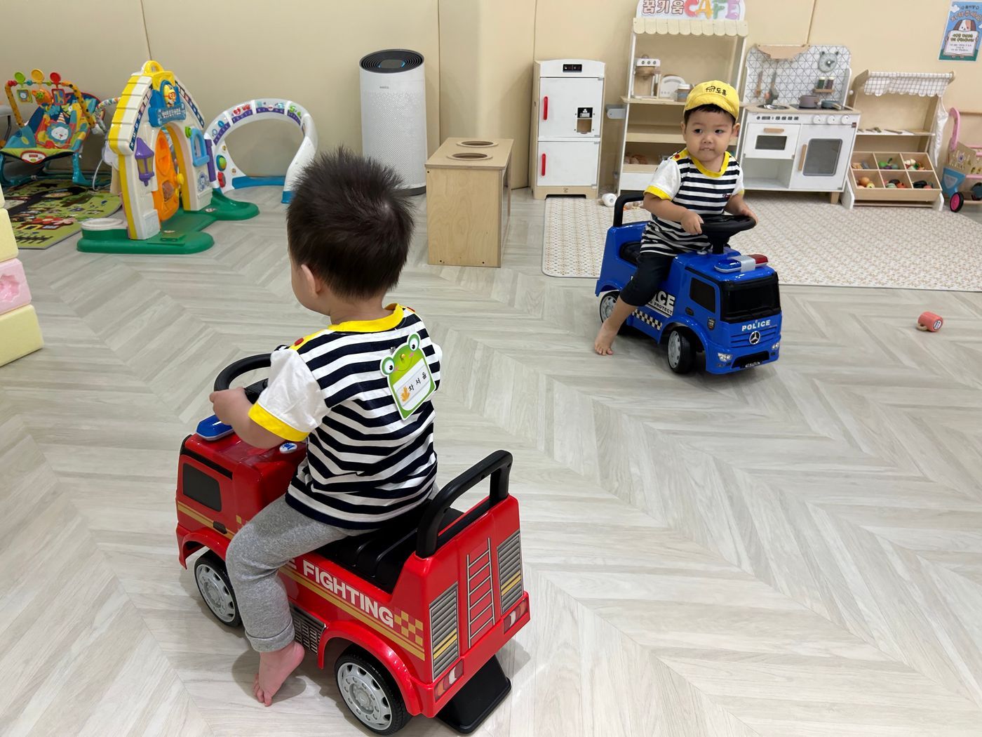 사랑이 친구들은 특히나 자동차 장난감을 좋아했는데요 붕붕카도 좋아하고 중장비 장난감도 좋아하는 모습이었습니다.
