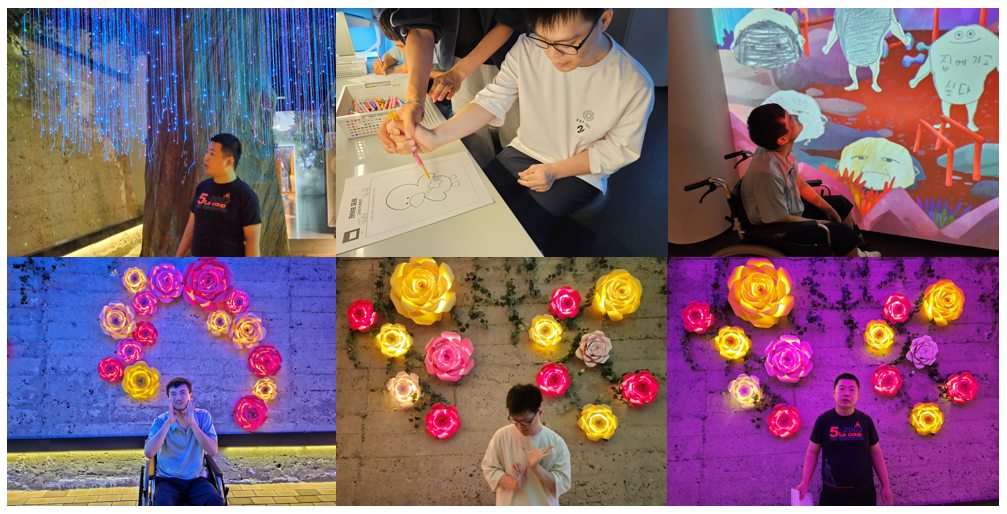 또한 다양한 미디어 아트도 재생되고 있어 신기한 아트가 나올 때는 소리를 내며 신기하다는 표현을 하기도 했습니다.