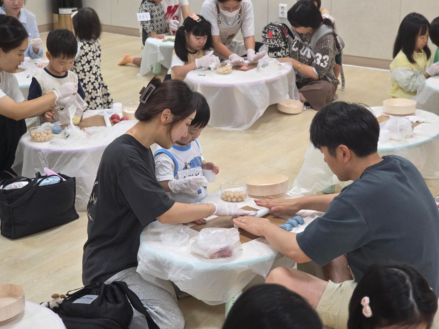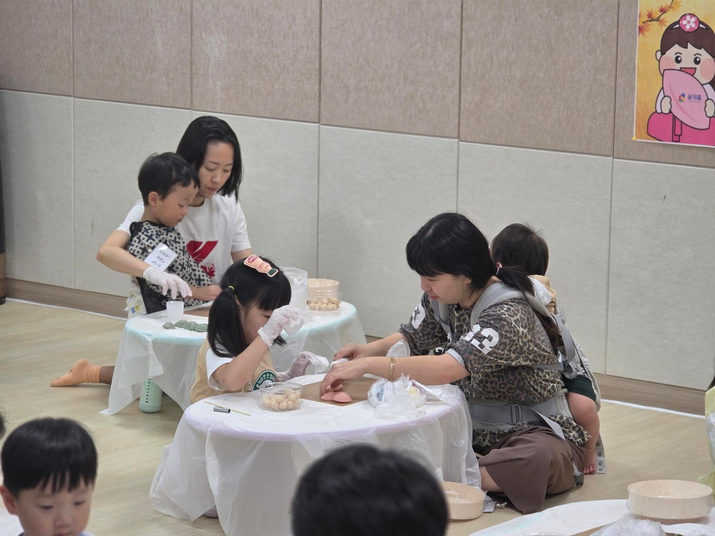 4세부터 미취학 아동들과 12세 미만의 발달지연 아동들이 모여 가족과 함께 바람떡을 만들었는데요