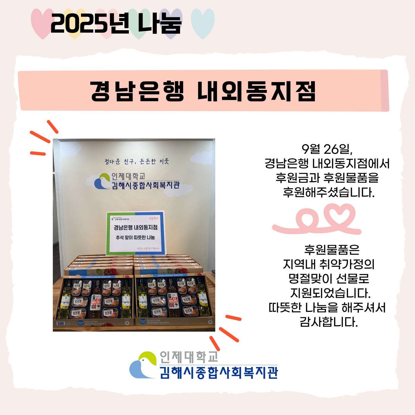 [따뜻한 나눔] 경남은행 내외동지점 명절선물 후원