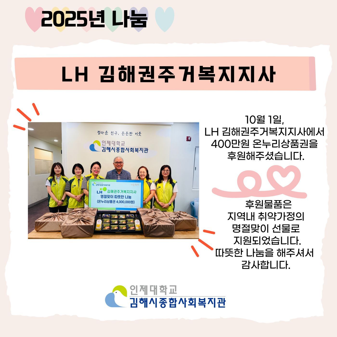 [따뜻한 나눔]LH김해권주거복지지사 명절선물 지원
