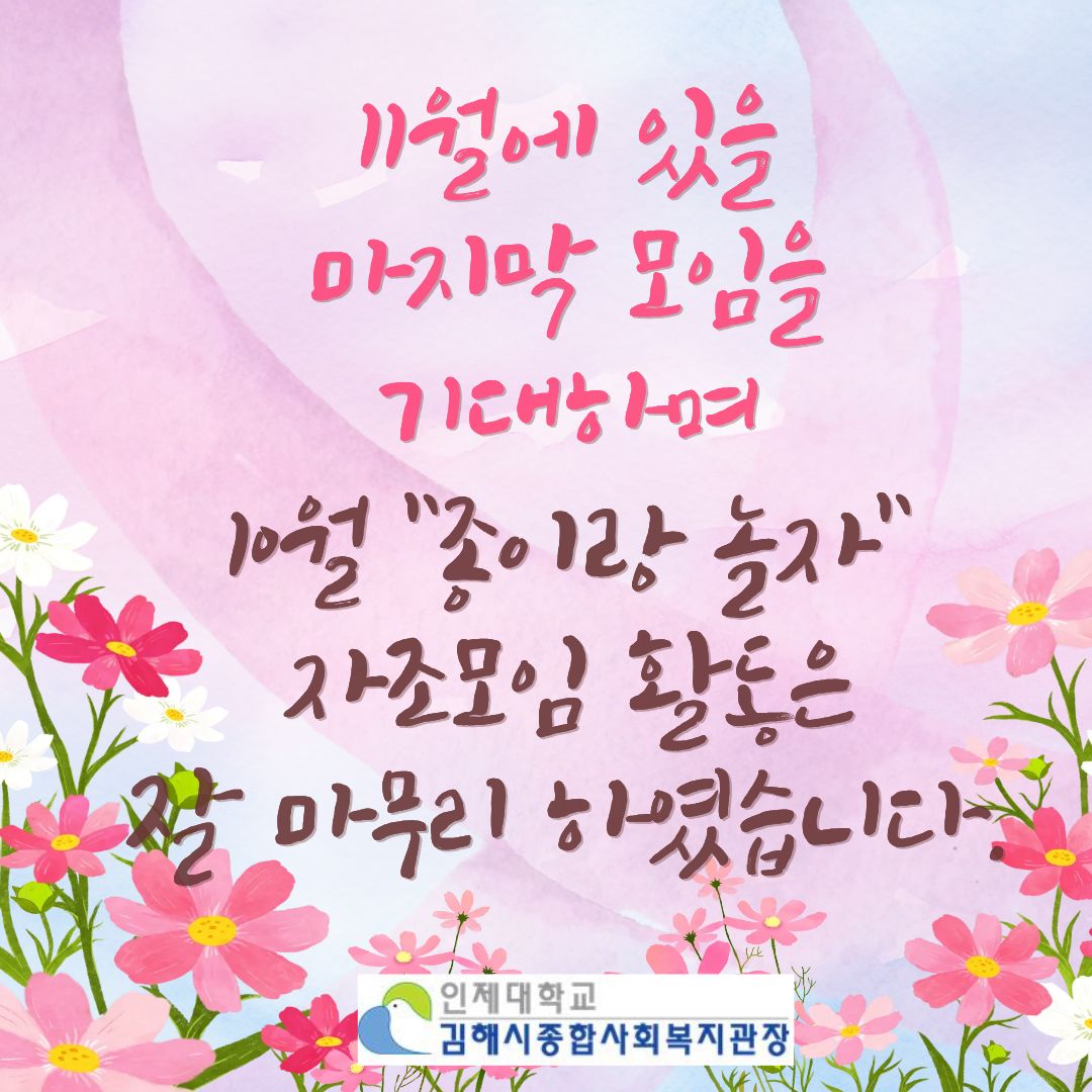 11월 마지막 모임을 기대하며 활동을 잘 마무리 하였습니다.