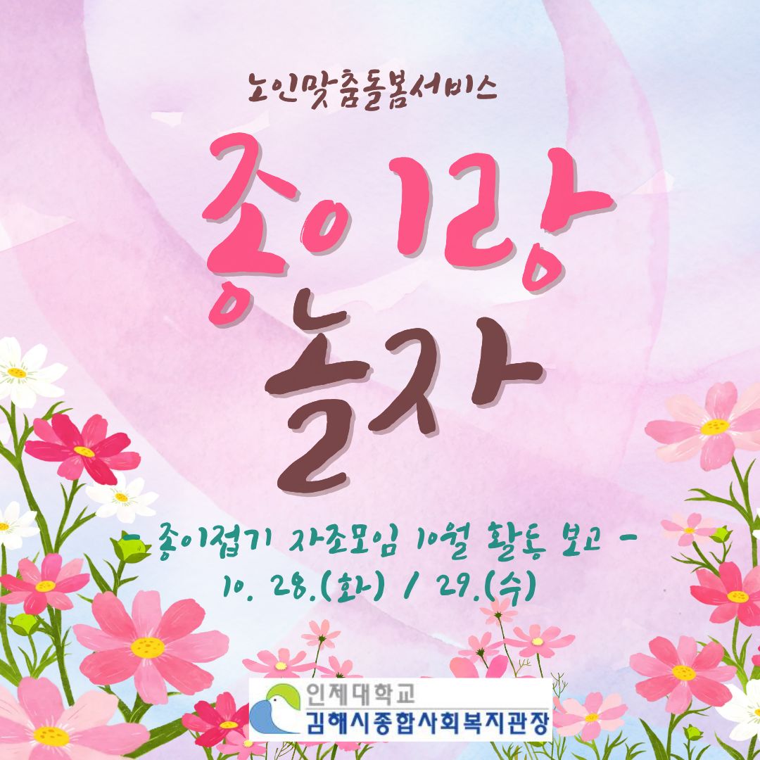노인맞춤돌봄서비스사업단에서는 10월 28일(화), 29일(수) 오전 10시~11시30분까지