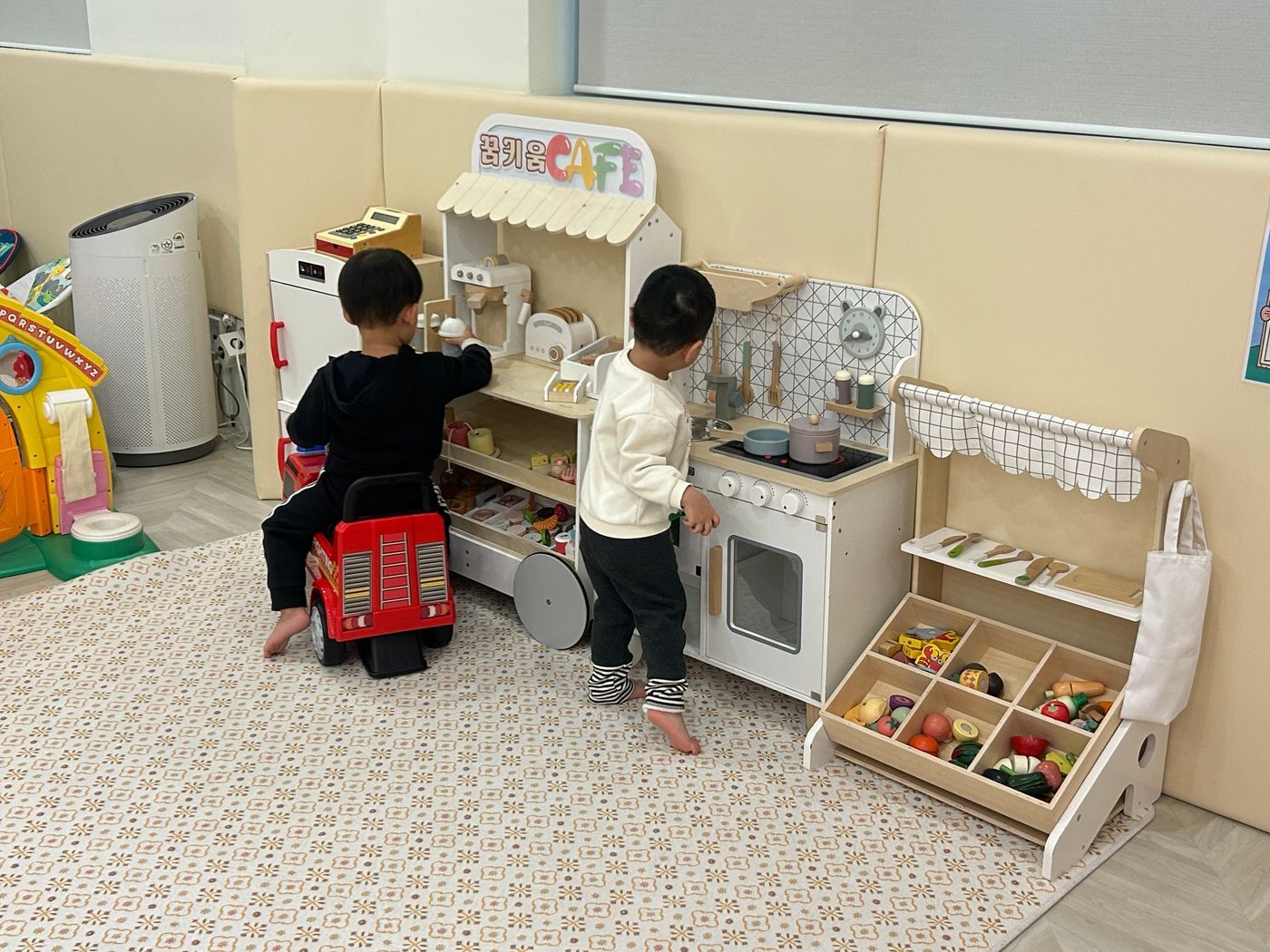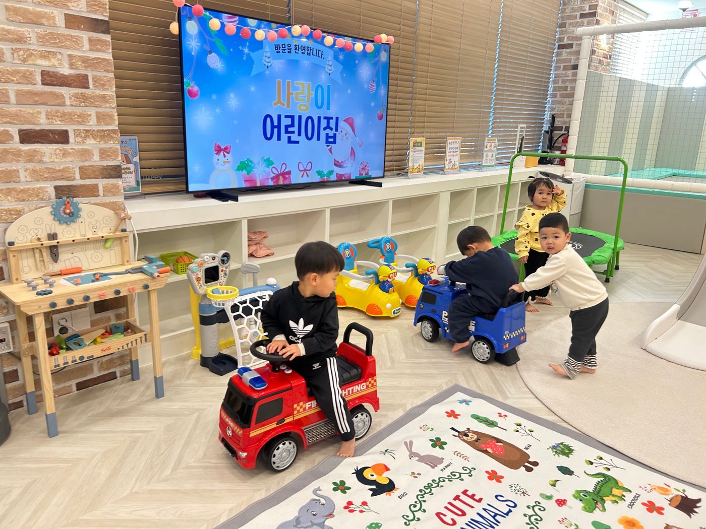 씩식하게 방문해준 사랑이 친구들은 붕붕카 타기를 좋아했어요. 친구와 함께 소꿉놀이를 하며 놀기도 하고