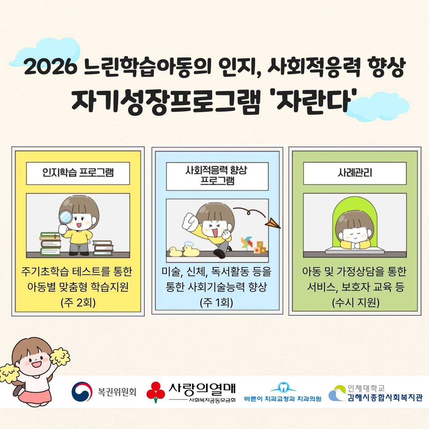 2026년 느린학습아동지원 '자란다' 사업을 소개합니다.