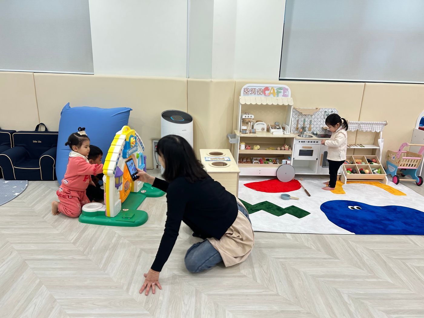 낯선 환경에 눈물이 고인것도 잠시 금새 선생님들과 함께 노는 꿈키움 놀이방에 재미를 느끼며 꿈키움의 인기공간