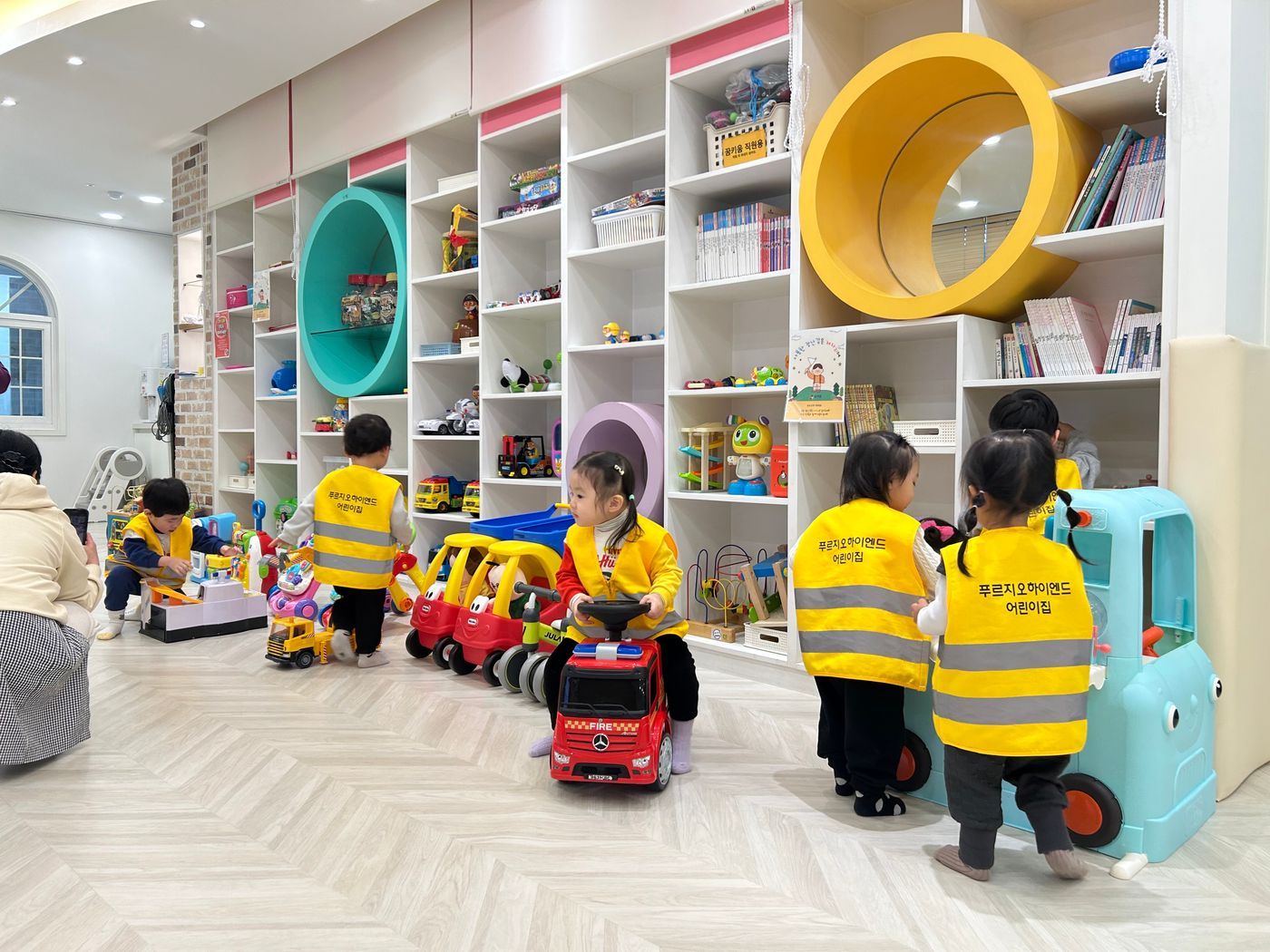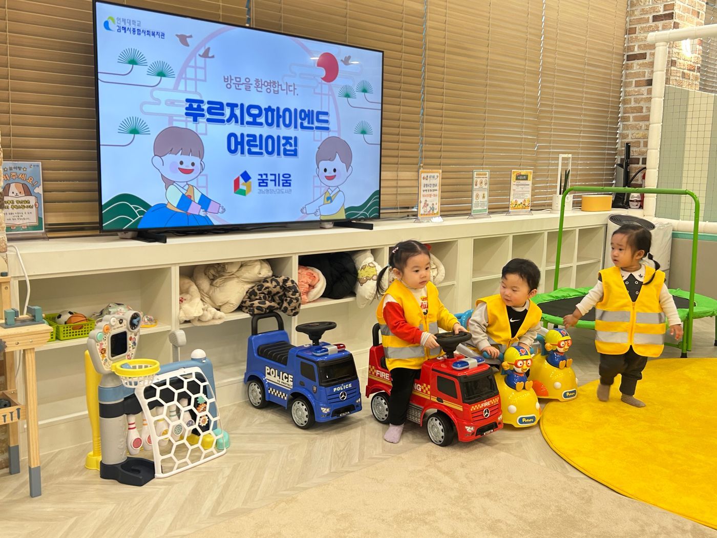 씩씩하게 들어와 스스로 신발도 척척 벗은 푸르지오하이엔드 어린이집 친구들은 꿈키움의 다양한 공간을 탐색하며 놀이 하였는데요
