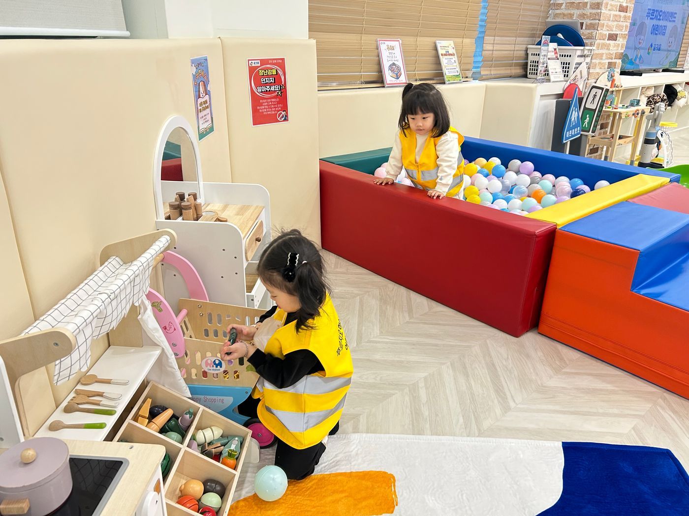 낚시놀이에 푹 빠져 손낚시를 즐기는 친구와 꿈키움의 인기공간인 볼풀장에 몸을 폭 담궈 즐거워 하는 친구들까지 원하는 놀잇감을