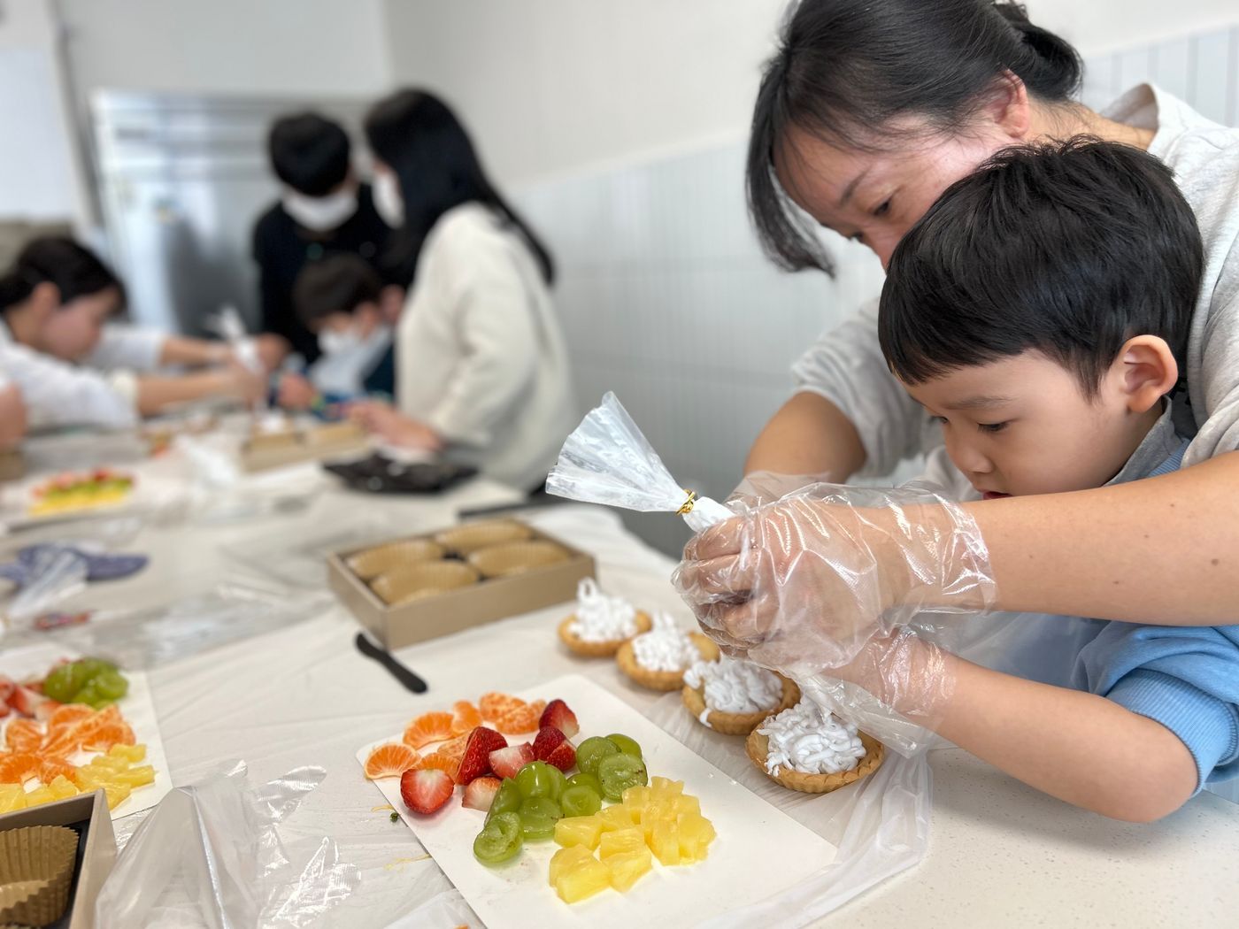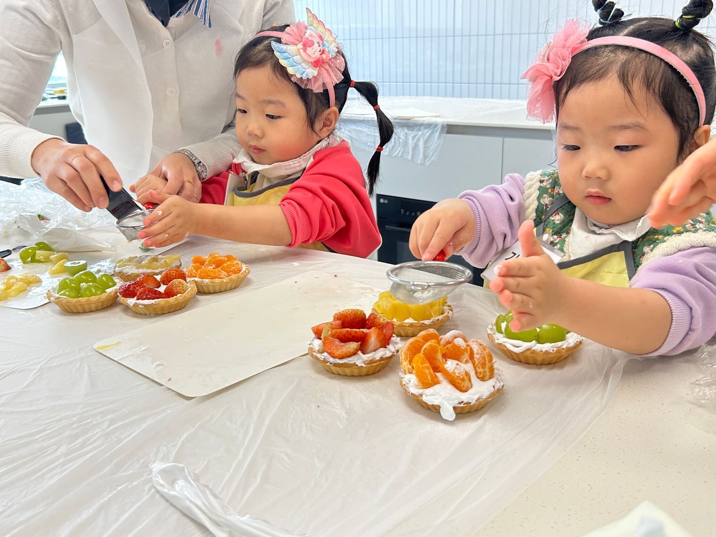 작은 두손 꼬옥 모아 생크림도 직접 또는 아빠 엄마의 도움을 받아 타르트 파이에 짜본 후 재철과일을 올려