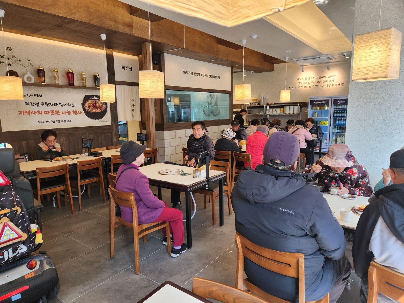 이번 행사는 김해 내외동에 위치한 파평옥 김해내외점 최강철 사장님의 개업 기념 나눔으로 마련되었으며, 인제경로식당 이용 어르신들께 해장국을 무료로 제공하는 뜻깊은 자리였습니다.