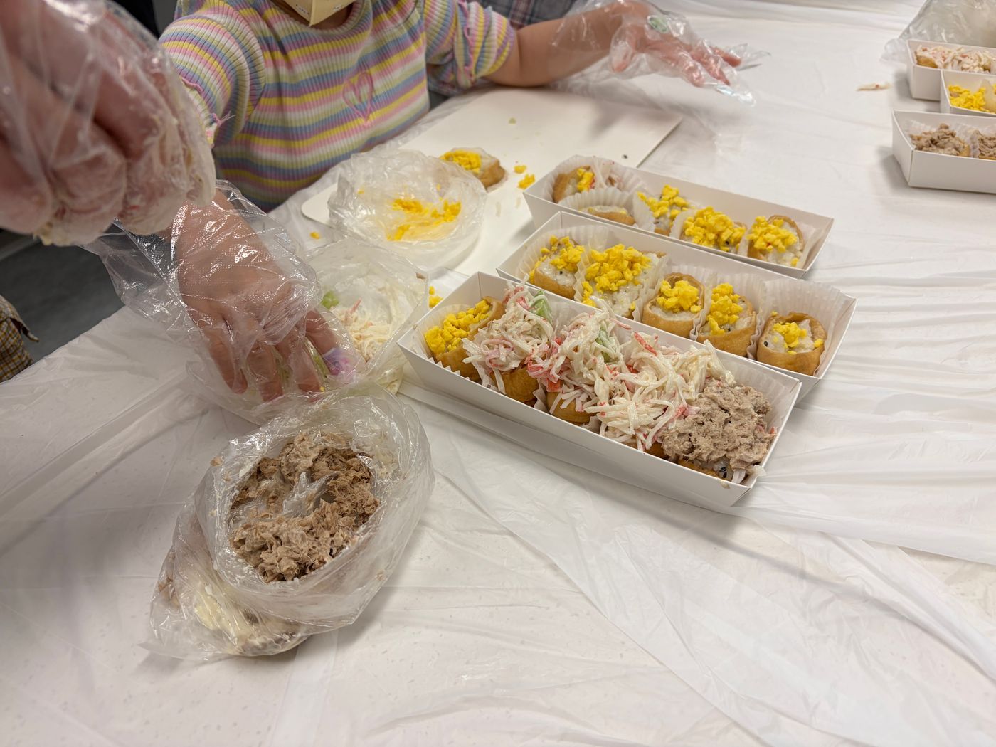 4세부터 발달지연 아동까지 '유부초밥 3종세트' 만들기 활동을 했어요.
