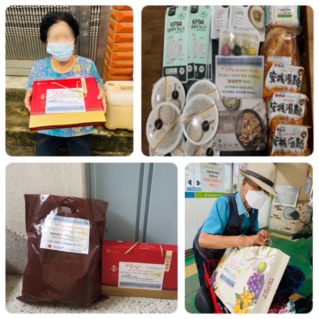 지난 9월 17일, 추석을 맞이해서 복지관의 무료급식소를 이용하는 143명의 어르신들에게 송편, 불고기 등으로 구성된 명절음식과 마스크, 물티슈 등 코로나방역물품, 추석맞이 선물세트를 전달하는 '추석명절 나눔행사'를 진행하였습니다.