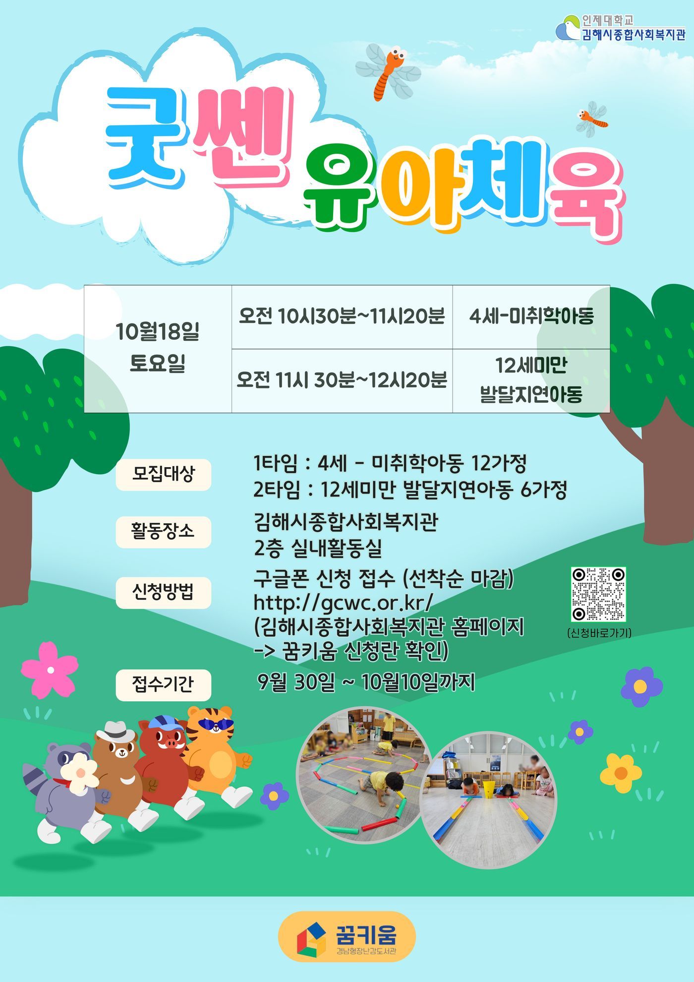 꿈키움이 '10월 굿쎈유아체육' 프로그램 참여자를 모집합니다.