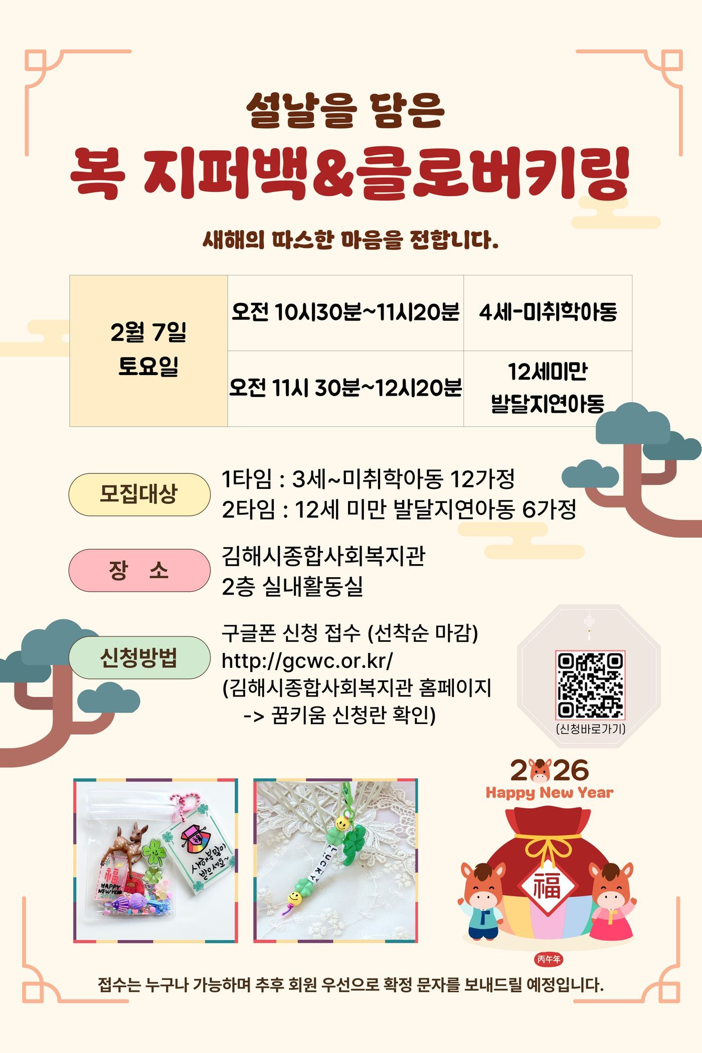 꿈키움이 '2월 복 지퍼팩&클로버 키링' 프로그램 참여자를 모집합니다.