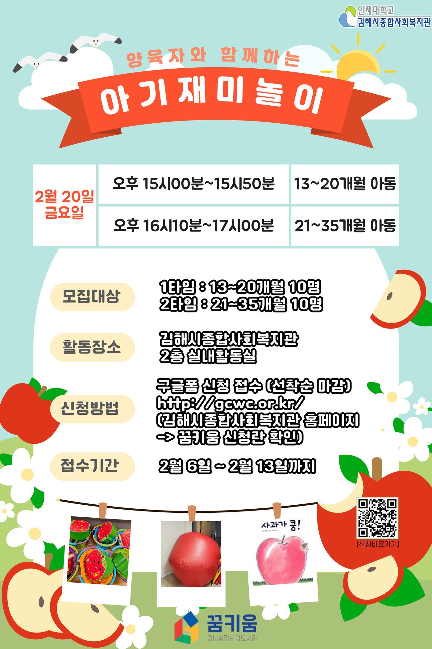 꿈키움이 '2월 아기재미놀이' 프로그램 참여자를 모집합니다.